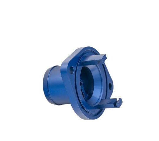 The Sinister Diesel Thermostat Housing is a direct replacement for the OEM part, offering improved durability and appearance. Made from corrosion-resistant anodized billet aluminum, it features precision CNC machining and a thick base plate for a long-lasting, secure seal. It also comes in Signature Sinister Blue for enhanced engine bay aesthetics.