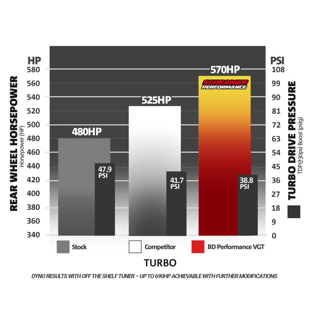 The BD Diesel Screamer HE351 Turbo (1045770) is a high-performance, drop-in replacement turbocharger for 2007.5–2012 Dodge Ram trucks with 6.7L Cummins engines. It features a larger compressor wheel and improved turbine design for increased airflow, better boost response, and enhanced horsepower and torque, all while maintaining safe exhaust gas temperatures. Designed for performance and heavy-duty use, it reduces turbo lag, improves throttle response, and supports higher fueling upgrades—making it ideal for maximizing engine performance without major modifications.