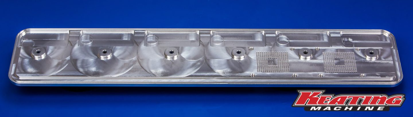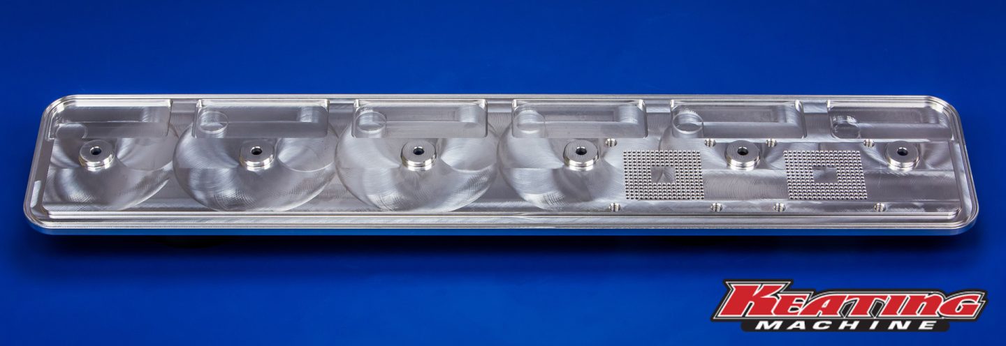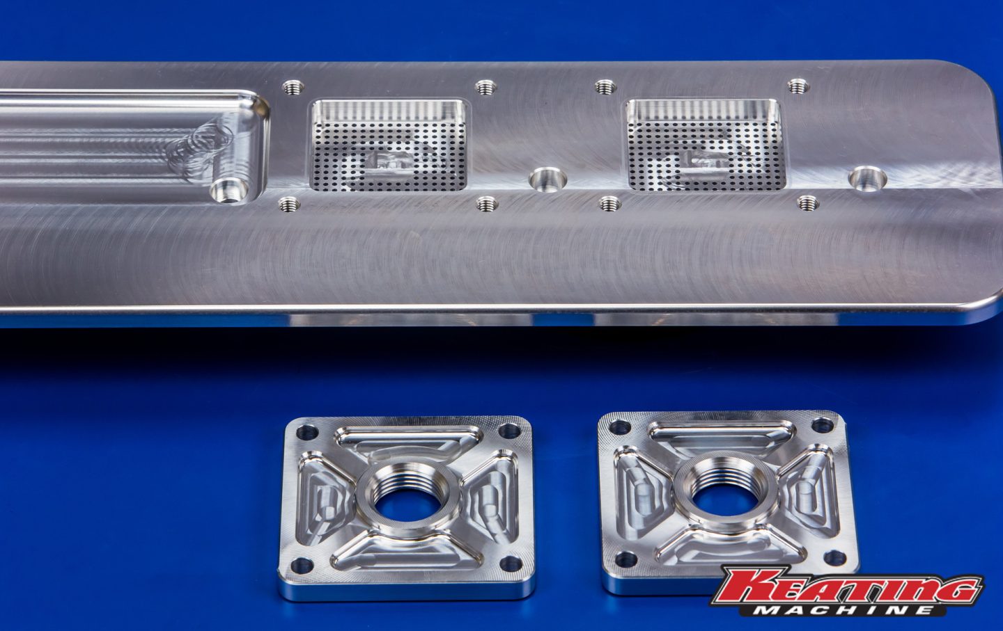 Keating machines each cover in-house from a solid 3/4-inch thick billet aluminum blank. As a result, the finished part delivers superior rigidity and eliminates the flex and oil seepage common with OEM tappet covers.