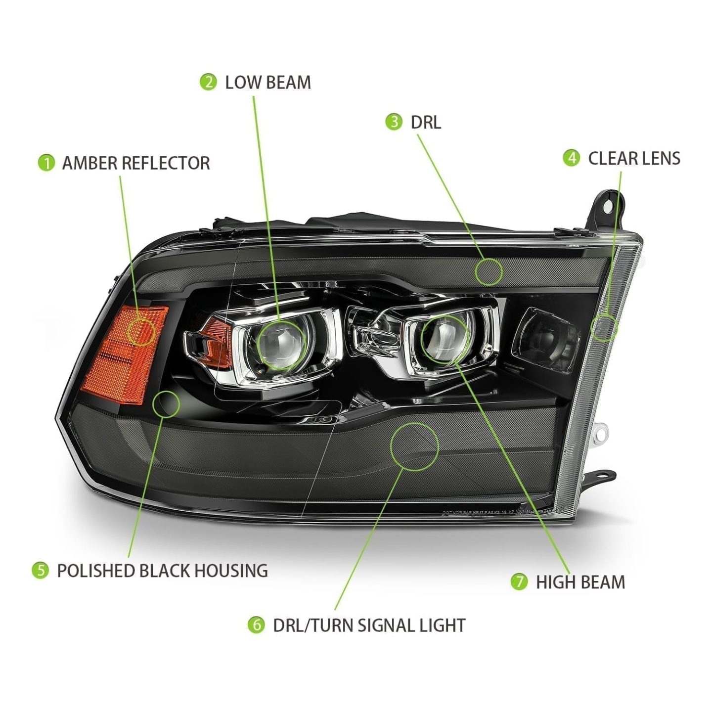 AlphaRex 880593 09-18 Ram Truck MK II PRO-Series Halogen Projector Headlights Jet Black