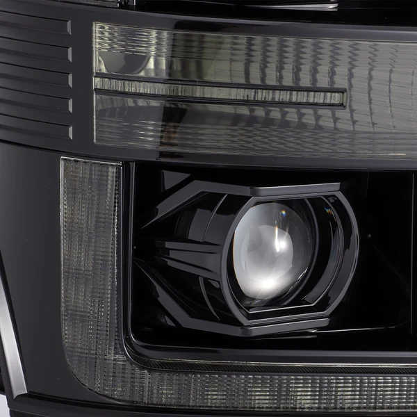 The AlphaRex PRO-Series Headlights 880140 fit 2011–2016 Powerstroke 6.7L trucks. They feature dual projectors, switchback LED DRL, and Alpha-Black styling for improved visibility and modern appearance.