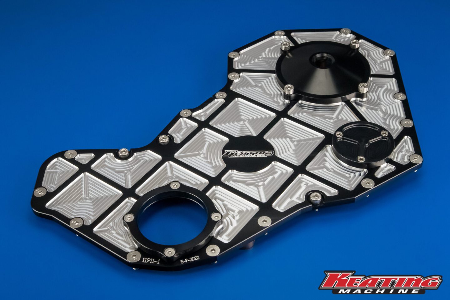 Black anodized billet pocketed timing front cover