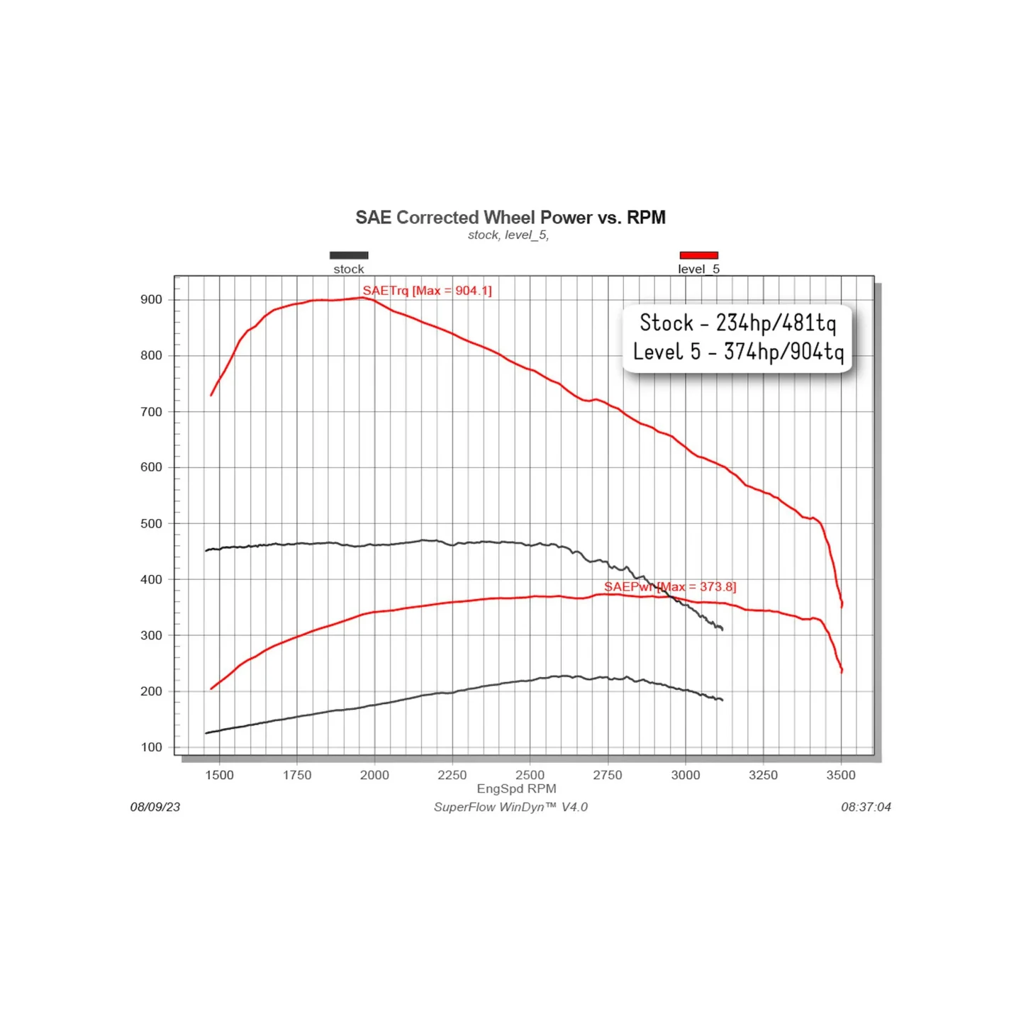 Level 4 adds approximately 100 horsepower and 300 lb-ft of torque