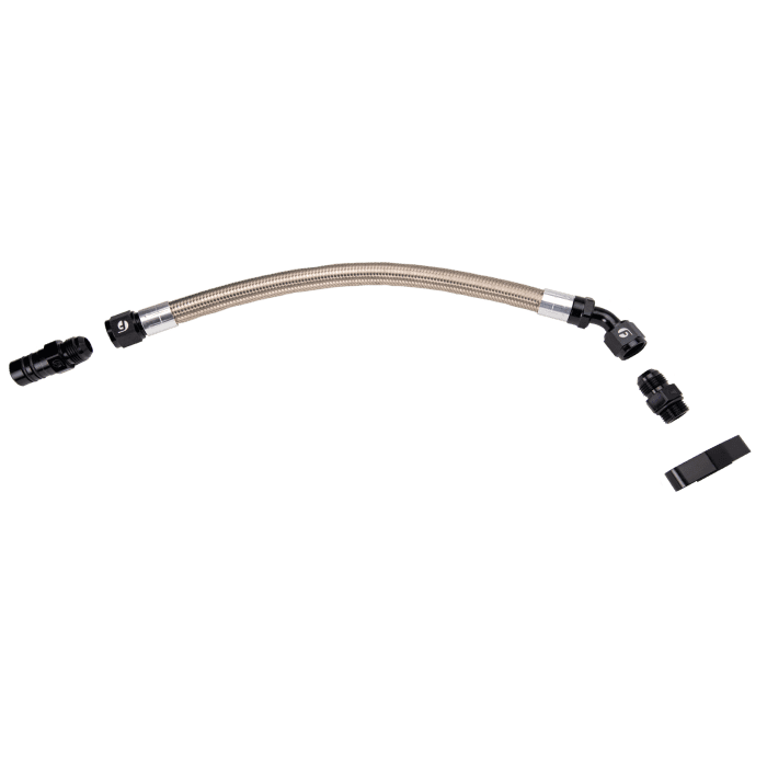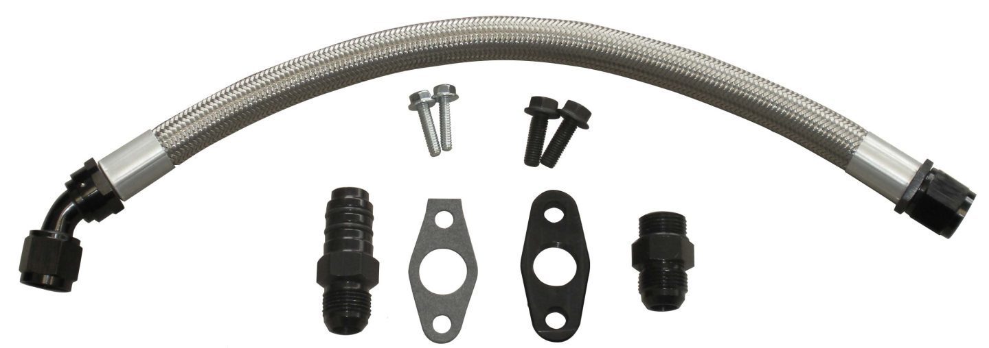 The Fleece Turbo Drain Tube Kit (FPE-CTDT-KIT) is a durable, universal oil drain solution for S300 and S400 turbochargers. It features a flexible stainless steel braided hose and precision-machined fittings for a secure, leak-free connection. Designed for compatibility with various engine setups, it’s ideal for custom or performance applications, offering reliable performance and easy installation for turbo upgrades or replacements.