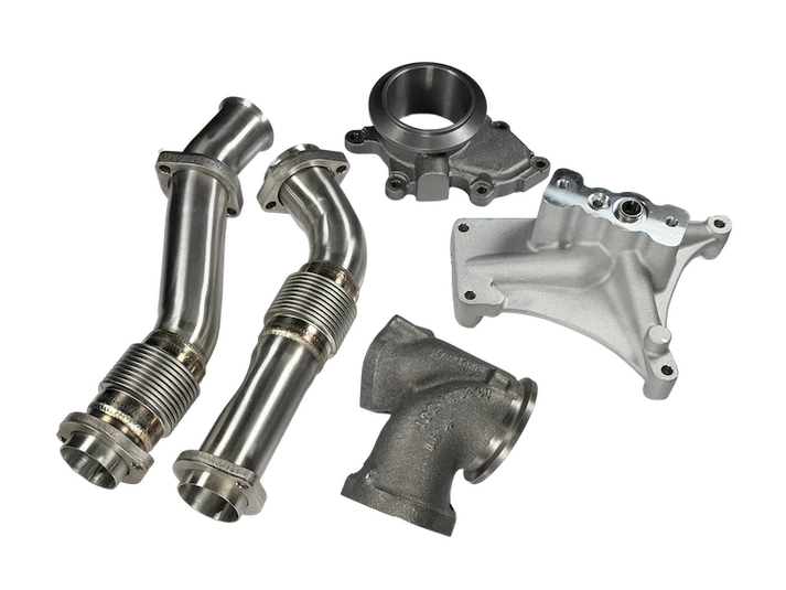 EXHAUST BRAKES: We get asked a lot about exhaust brakes and if they work with our turbos. We have found that some brands have clearance issues and might cause the brake to hinder performance, rub the turbine wheel, or cause other issues. These brakes typically use some sort of flapper to close which causes extreme exhaust back pressure to aide in braking. It will be up to the customer to verify fitment and functionality.
