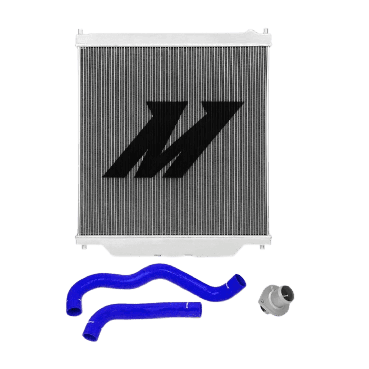 To further enhance the cooling system, the bundle also includes a Mishimoto Heavy-Duty Transmission Cooler, which is designed to keep your transmission fluid temperatures in check, especially under heavy load or towing conditions. This cooler is constructed from high-quality aluminum and features a stacked-plate design for maximum cooling efficiency.