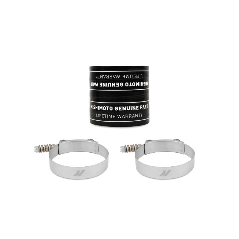 (1) Cold Side, Upper Silicone Boot with DuraCore technology (2) Constant-Tension T-Bolt clamps (1) Mishimoto Lifetime Warranty