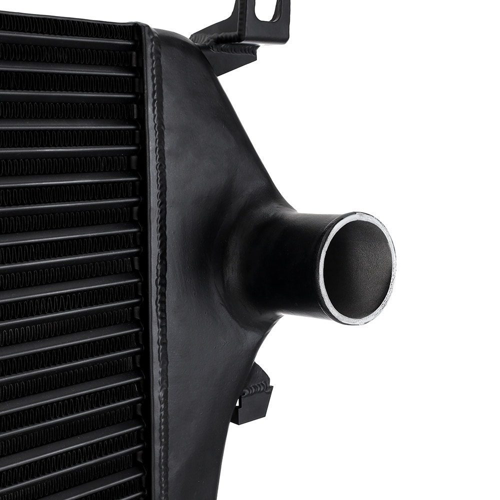 - Improved flow over stock intercooler reduces turbo stress and improves spool
