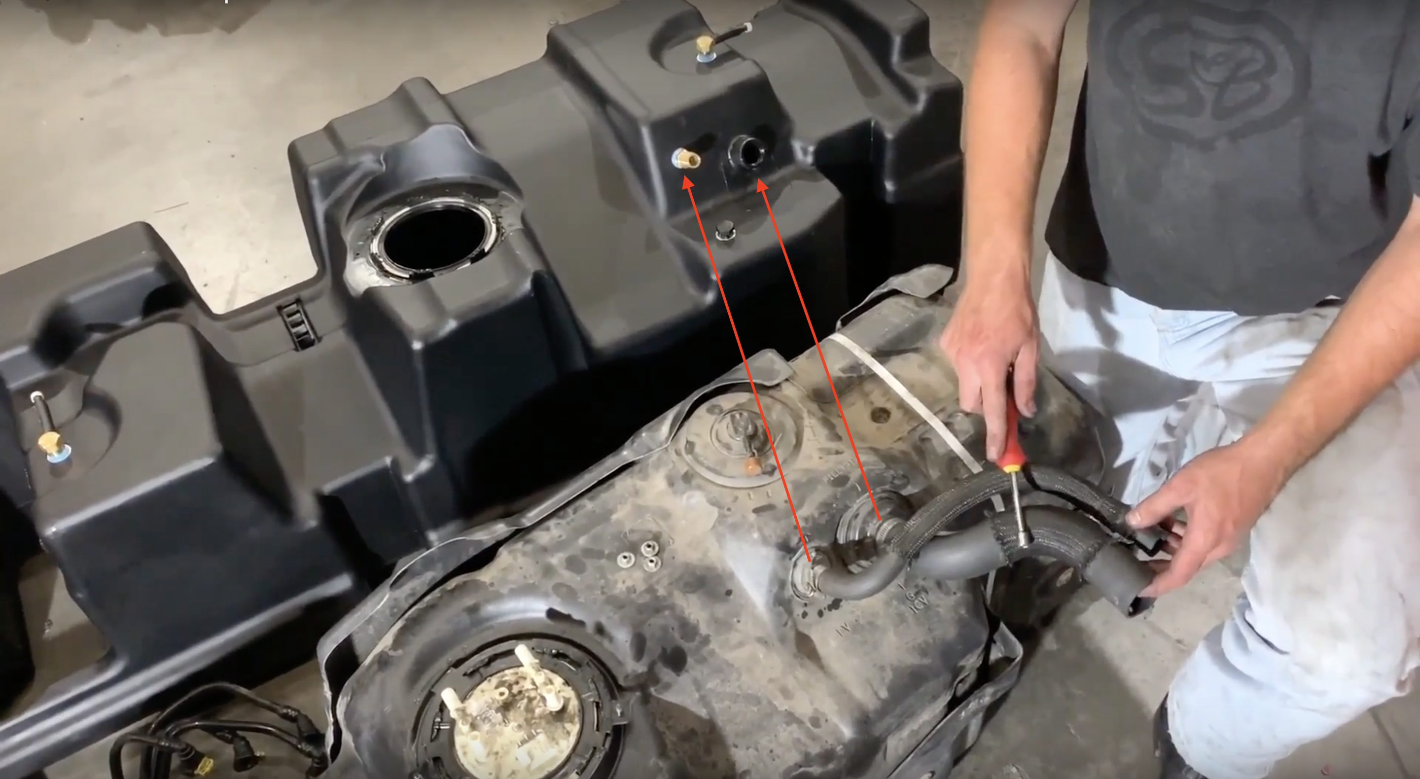 - Drain your original fuel tank before beginning the S&B Installation process. S&B Tanks recommends removing only an empty or near empty tank for your safety. We recommend using a siphon or electronic transfer pump.