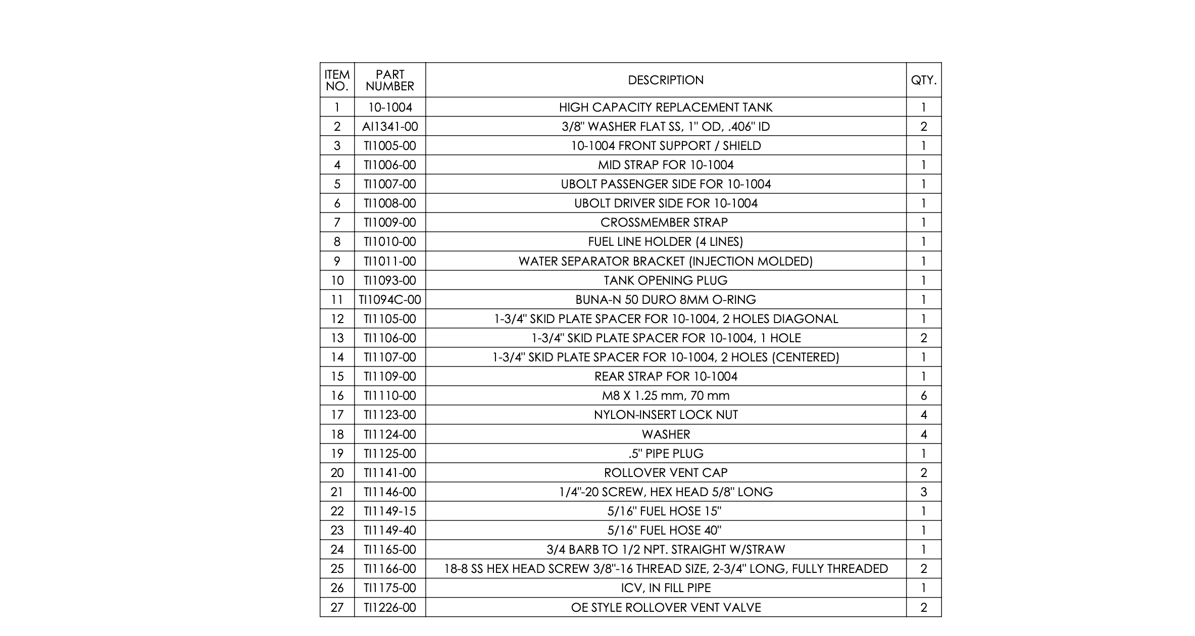 | Ground clearance compare to oe tank | 1.75″ Lower |