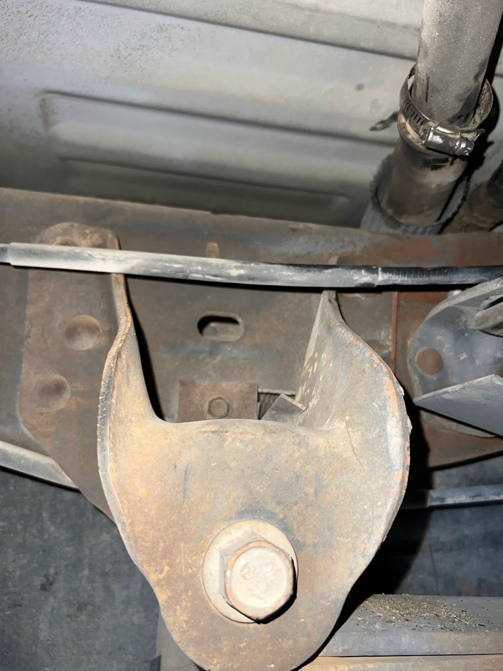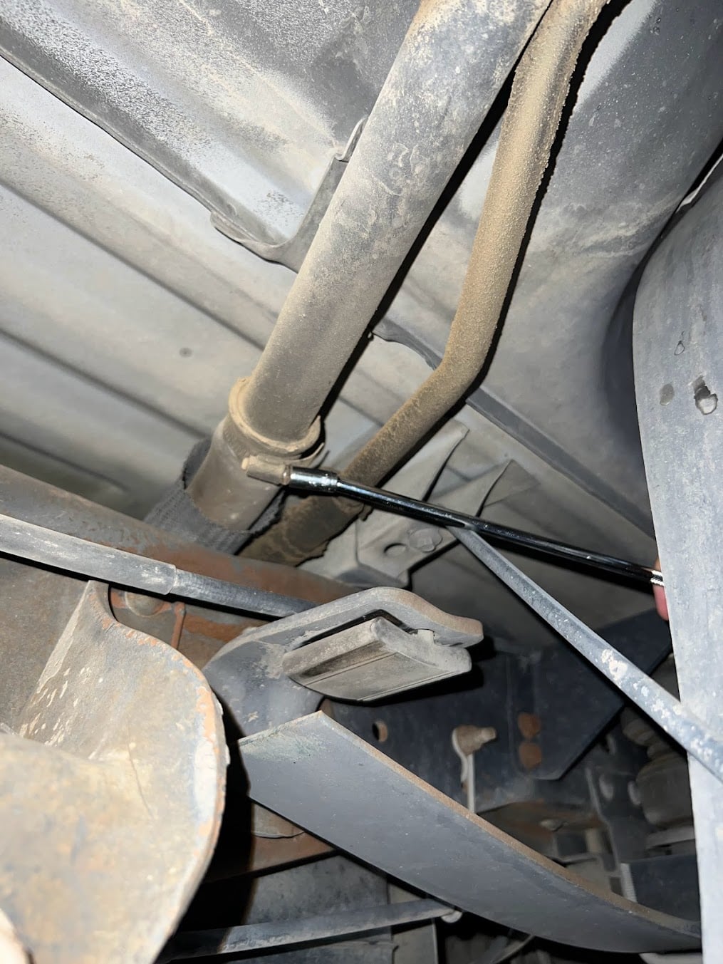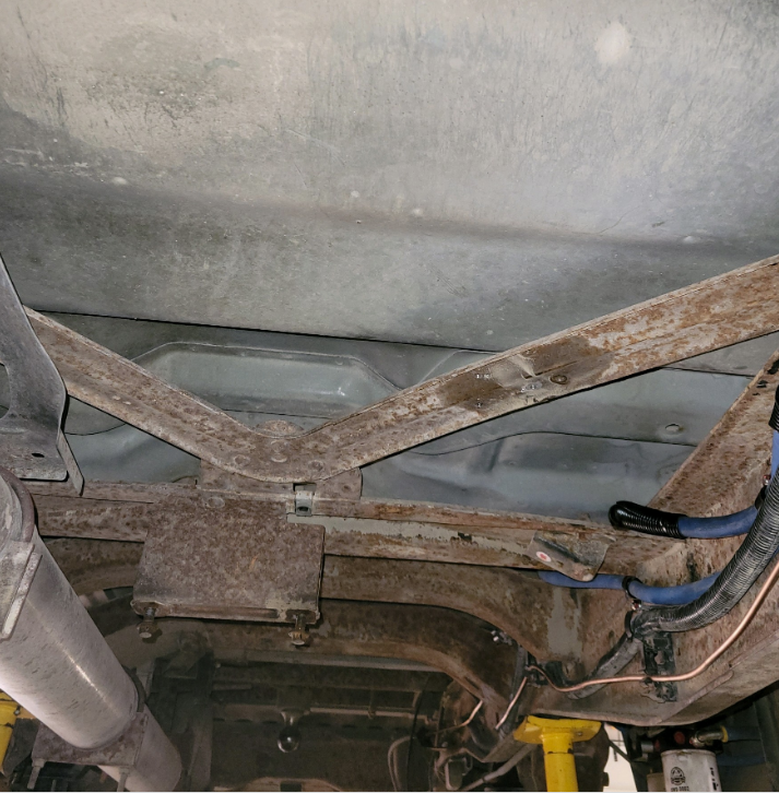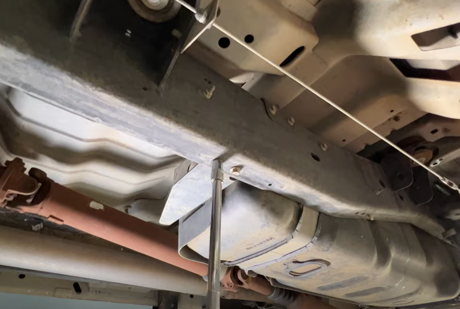 If your truck has this V shaped crossmember connected to the carrier bearing crossmember, the S&B Tank will not fit with this in place.