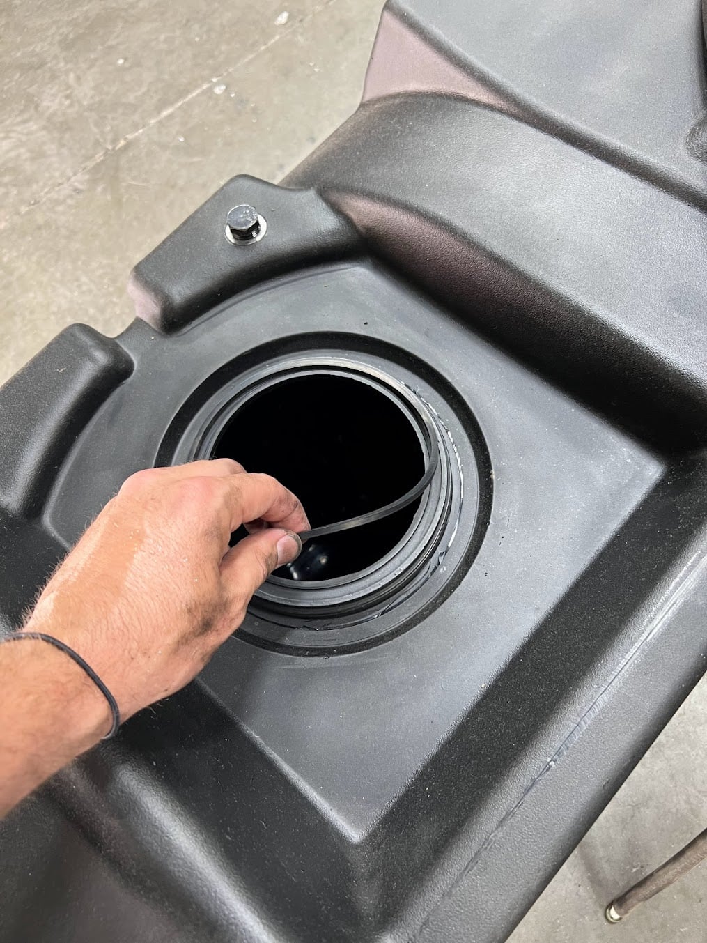 – Apply air pressure through the fill tube, spray soapy water around o’ring area and look/listen for leaks