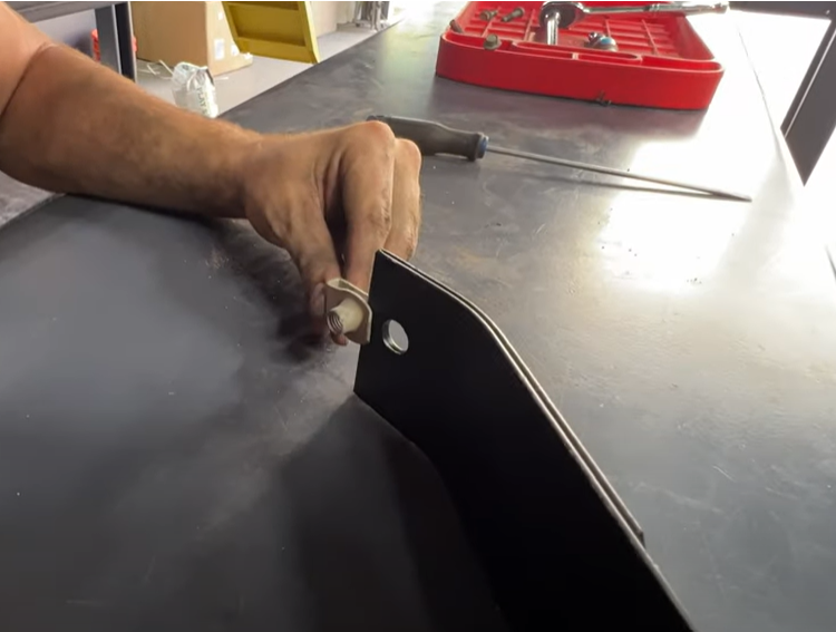 Transfer the slip nut from the front OEM strap onto the S&B front strap. The front strap is the shorter of the 2 S&B straps.