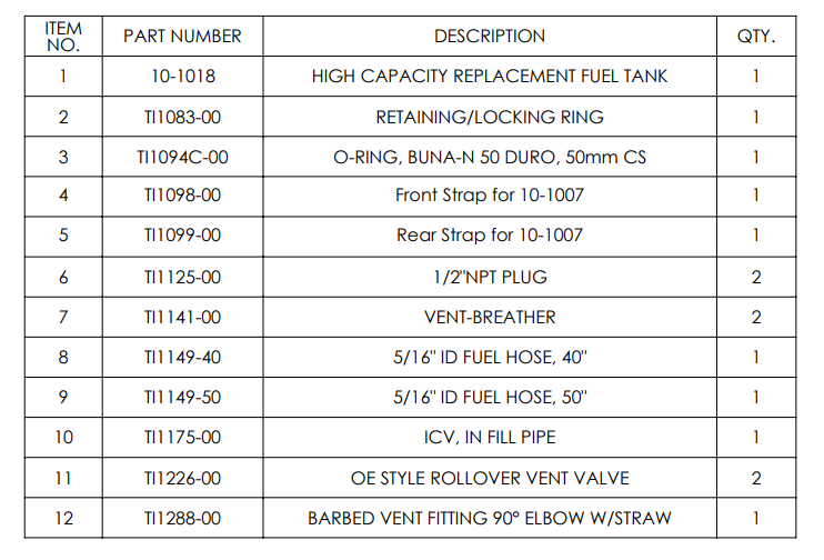 - This tank won’t fit trucks with aftermarket or one-piece drivelines.