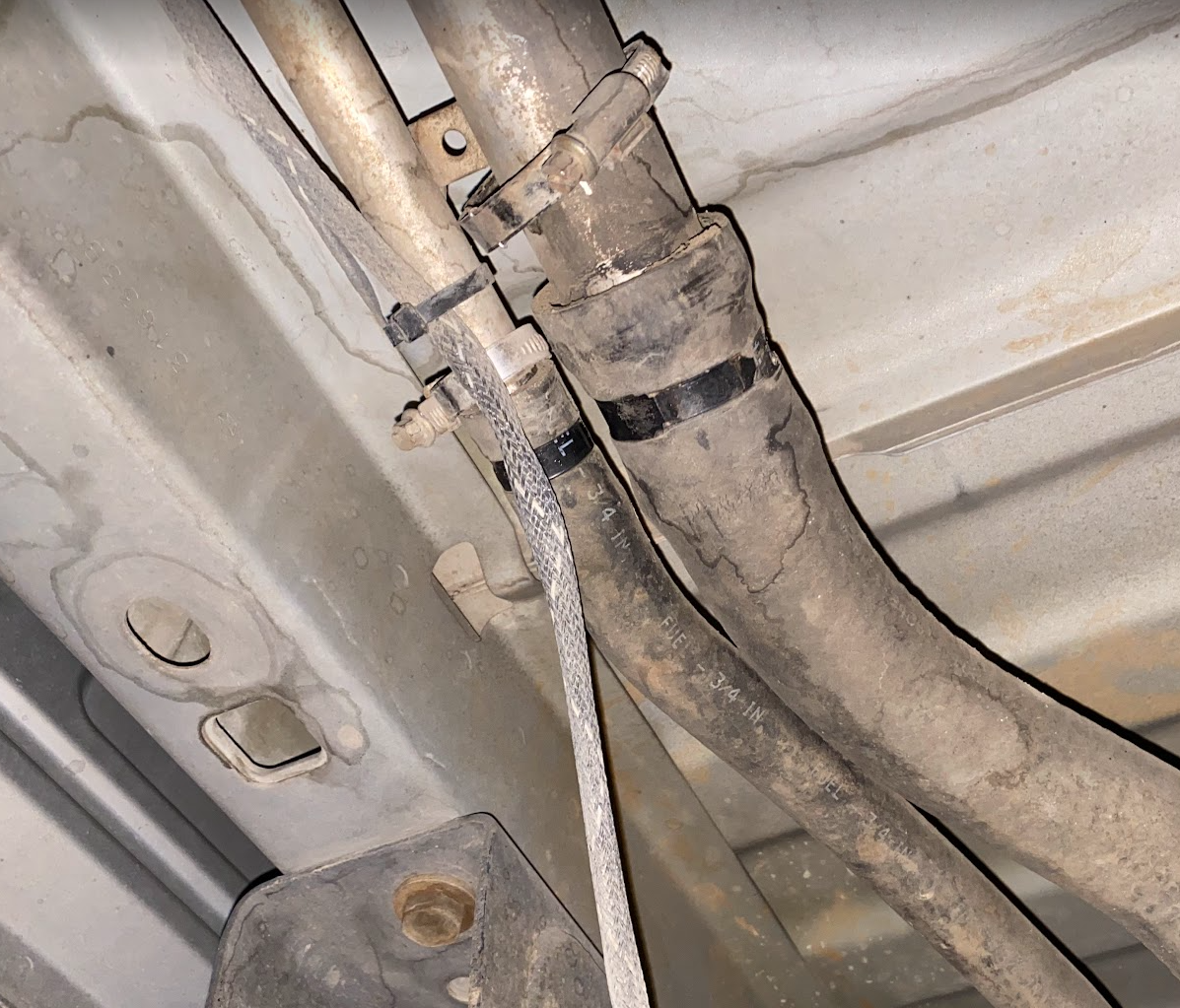 Reinstall the hose clamps on the fill and vent lines.