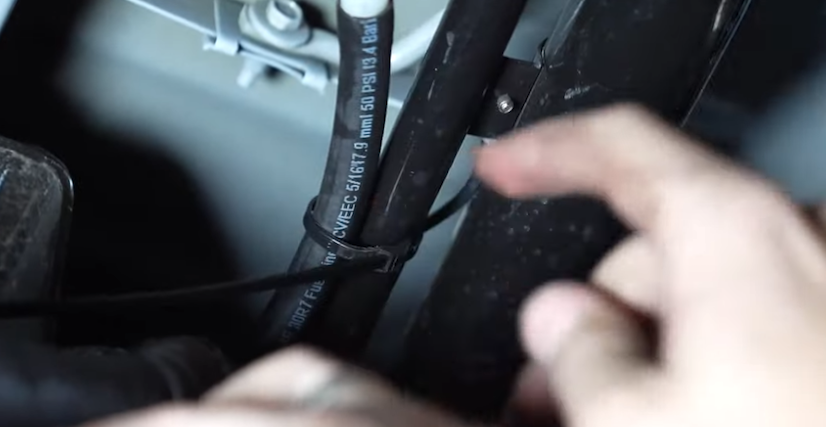Transfer over the fill hose and put in onto the S&B Tank. Take the vent hose clamp from the OEM tank and reuse this hose clamp with the S&B vent line.