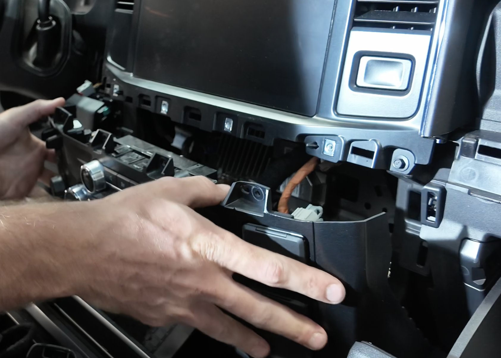 Tip:Â Be careful when removing the panel from the dash as there are many wires connected to it from behind.