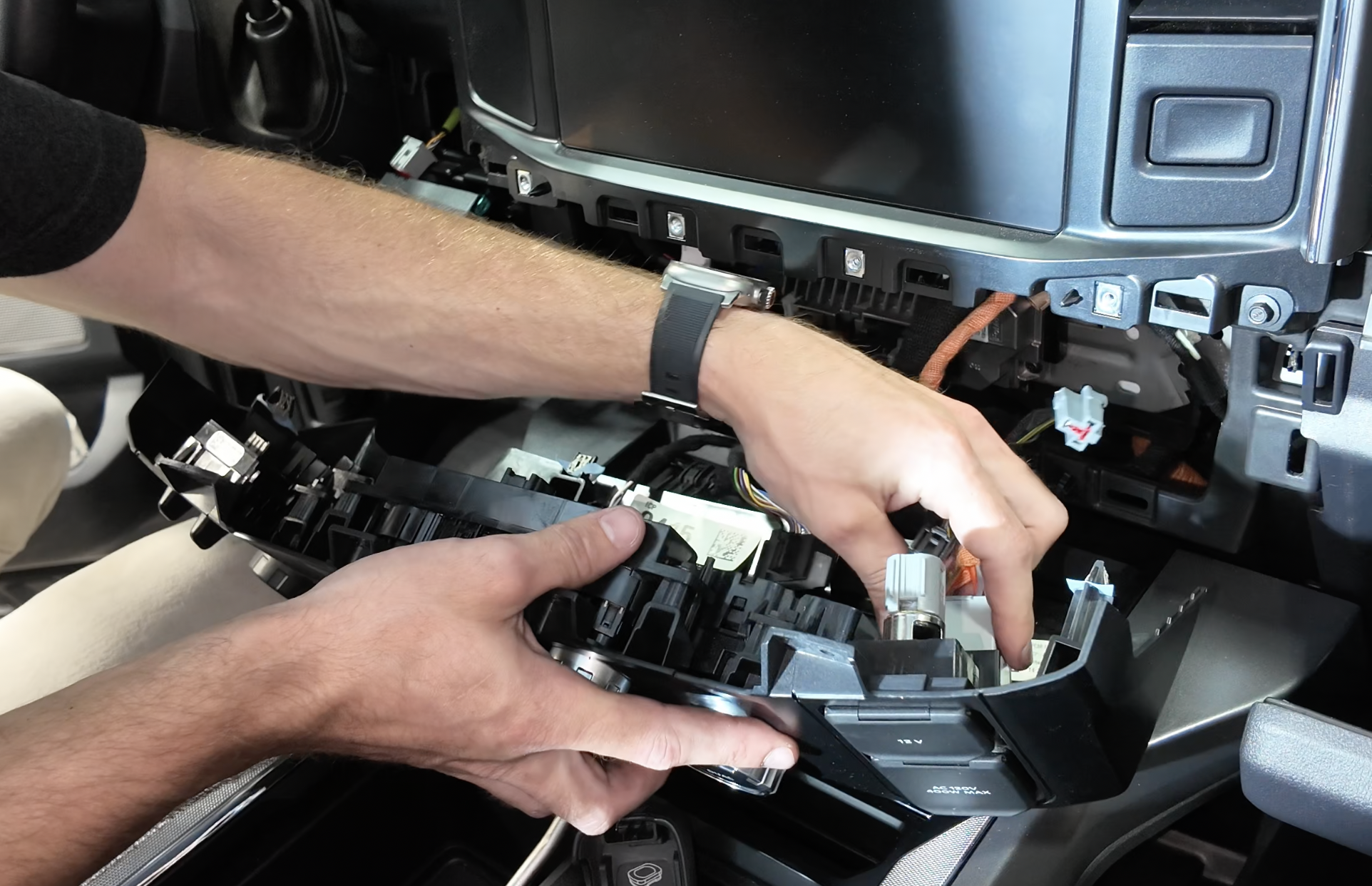 Now it’s time to plug all the connectors back into the Radio/AC Control Module. We recommend using the picture you took during Step 7.