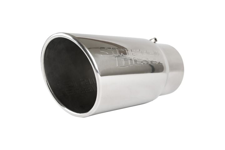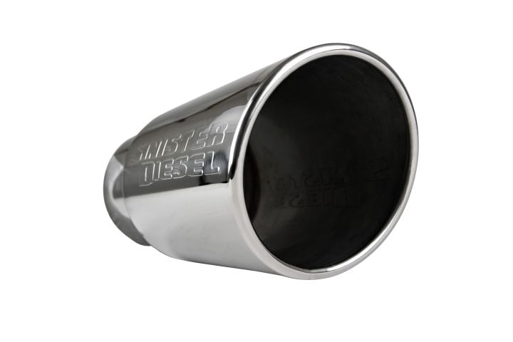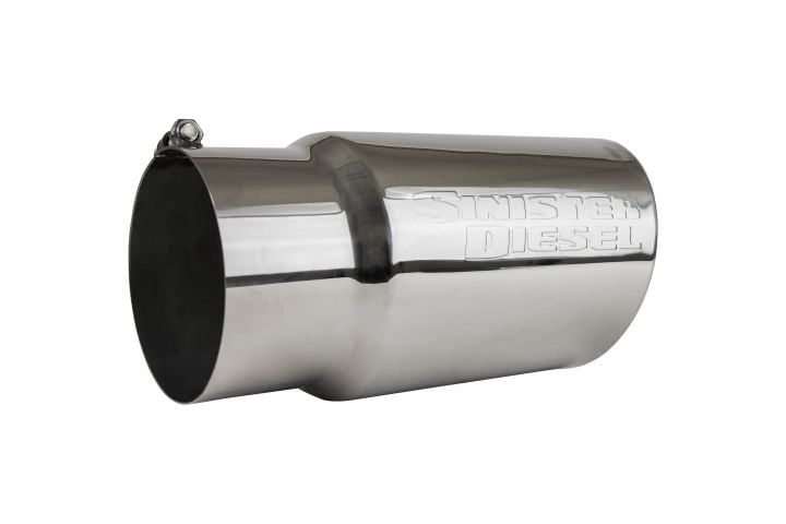 Each Sinister Diesel exhaust tip is made from high-quality 304 stainless steel for durability and long life. Each tip is then mirror polished for easy cleaning and a flashy appearance. The single-wall 5 to 6 inch tip fits any 5-inch tailpipe and widens to a full 6-inches with a rolled edge. Each tip is finished and proudly stamped by the Sinister Diesel Logo on the side
