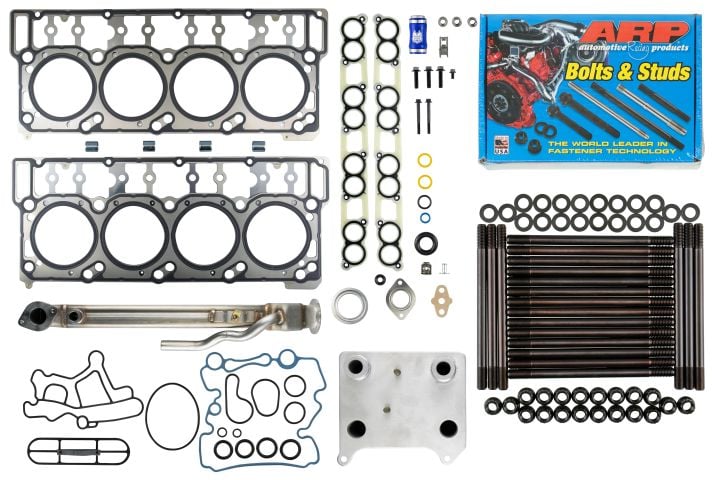 The Sinister Diesel Complete Solution® Kit is a comprehensive upgrade for rebuilding the 6.0 PowerStroke engine in 2004-2007 Ford F-Series Super Duty trucks and Ford Excursion SUVs. It addresses common engine issues like stretched head bolts, blown head gaskets, and excessive exhaust smoke. The kit includes essential components such as a replacement EGR cooler, head gaskets, ARP head studs, an updated oil cooler kit, intake gaskets, and turbo hardware. Easy to install, this all-in-one solution ensures a reliable rebuild, making it ideal for work, pleasure, or show vehicles.