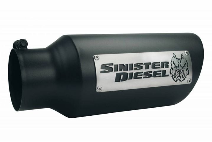 Give your Ford Super Duty Powerstroke, Dodge Ram Cummins, Chevy Silverado/GMC Sierra Duramax or any vehicle equipped with a 4″ exhaust tail pipe a bold look with the Sinister Diesel Dual Wall Exhaust Tip.