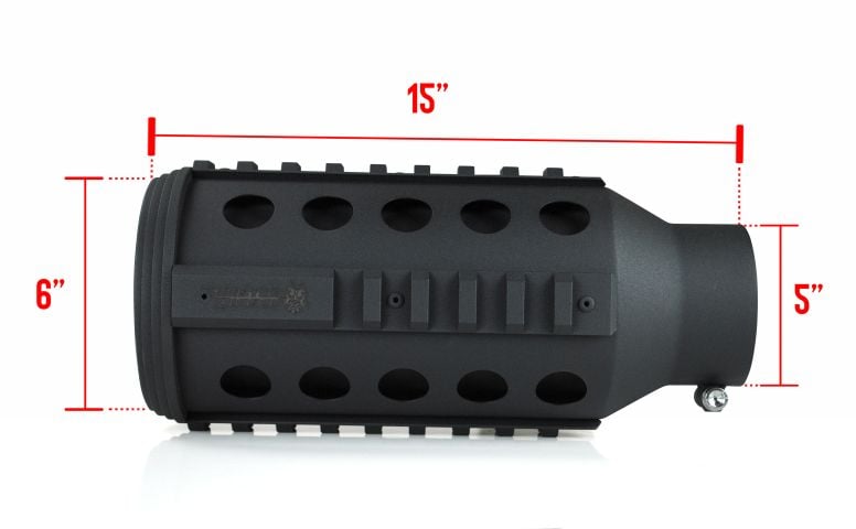 Really stand out from the crowd with this super aggressive AR-15 exhaust tip from Sinister Diesel. Designed to look like the quad-rail handguard on a real AR-15, a gun that’s been used and respected by military and police officers for some time, you can show your interest in this popular firearm. Even better, it works on any diesel truck exhaust system that fits the 5-inch inlet, while providing a more intimidating 6-inch outlet.