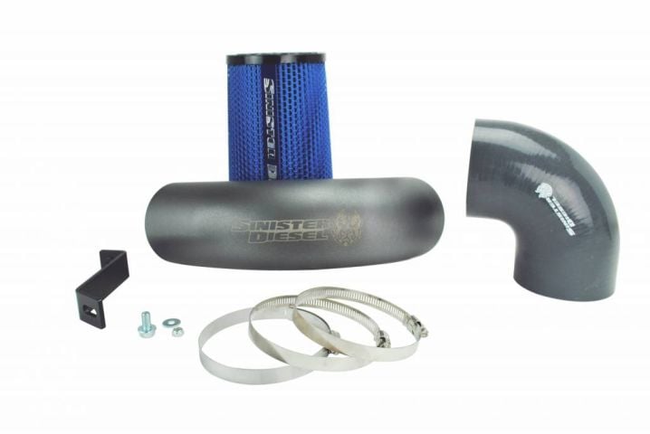 Sinister Diesel only uses a precision CNC mandrel bent aluminum tube for the intake, ensuring smooth flow of air. Silicone couplings combine with the Signature Sinister Gray powder coat for an attractive and durable solution. You also enjoy a cleanable cotton element air filter, so buying new filters is a thing of the past. Installation is simple and all mounting hardware comes included.