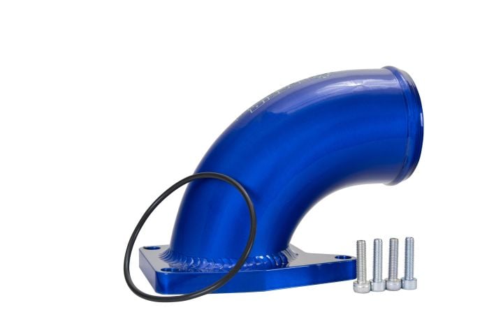 - Aluminum Intake Elbow – Powder Coated in Sinister Blue