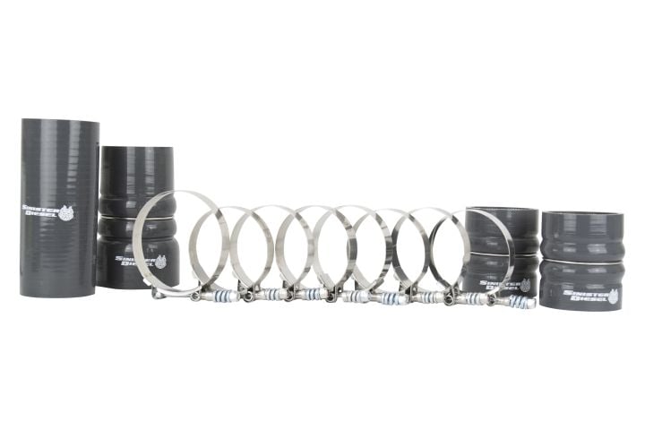 The Sinister Diesel Charge Pipe Kit is designed for a straightforward installation with basic hand tools. The included 5-ply silicone boots and stainless steel spring clamps ensure a secure, leak-free fit, making this a hassle-free upgrade. No cutting or special modifications are required, allowing you to quickly enhance your engine’s performance and efficiency.