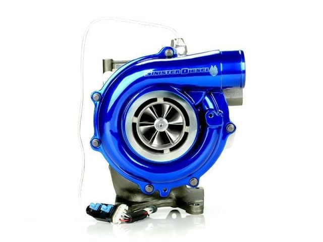 The Sinister Diesel Powermax Series 2 Turbo uses a larger compressor wheel to deliver quick turbo spool, mid and top-end horsepower, and crisp throttle response in convenient bolt-on package. In addition, this turbo features Garrett Advanced Variable Nozzle Turbine design that allows for increased compressor flow and boost response. This unit is built by the original manufacturer using original-style housings so they are 100% compatible with your GM truck’s Duramax engine for a drop in installation. The turbo’s compressor cover comes finished in our high gloss signature “Sinister Blue”