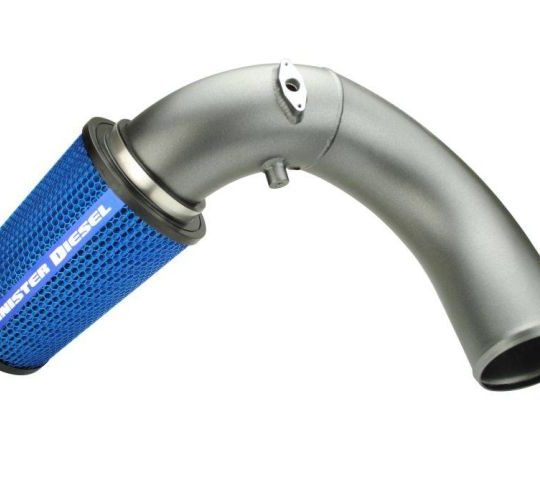The Sinister Diesel cold air intake for 2004.5-07 Dodge Cummins 5.9L engines improves throttle response, turbo spool-up, and fuel economy, making it ideal for daily driving, towing, and racing. It features durable CNC mandrel-bent aluminum tubing, an oversized reusable cotton filter, and a corrosion-resistant Sinister Gray powder-coated finish.