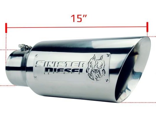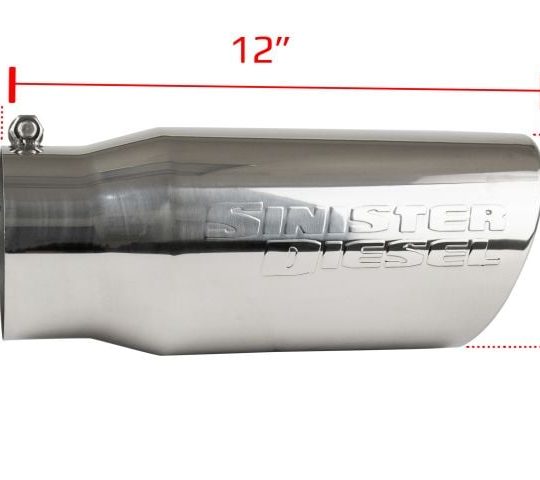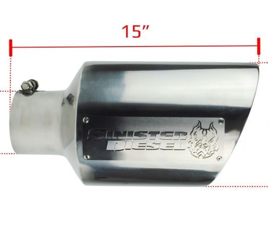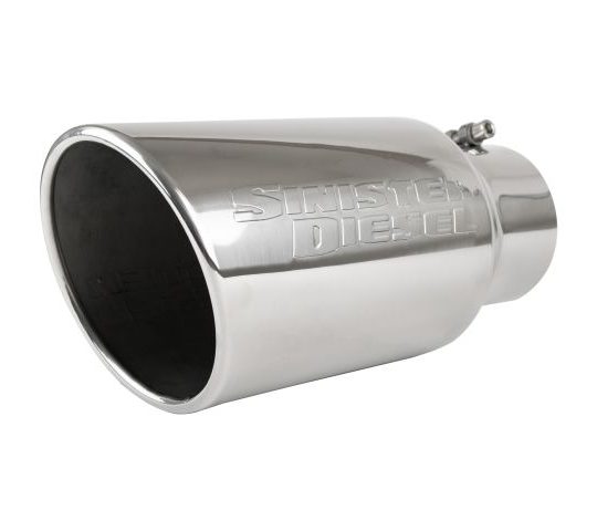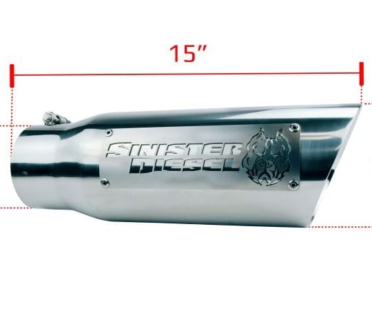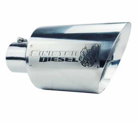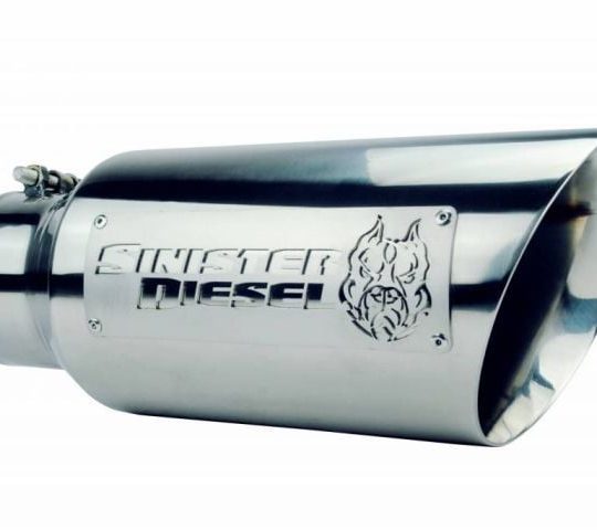 The Sinister Diesel Exhaust Tip is a durable, high-quality stainless steel accessory that enhances both the appearance and performance of your vehicle’s exhaust system. Featuring a single-wall, angle-cut design and a polished finish, it adds a stylish, aggressive look to your truck. Designed to fit most 4″ exhaust systems, it offers easy, hassle-free installation with all necessary components included.