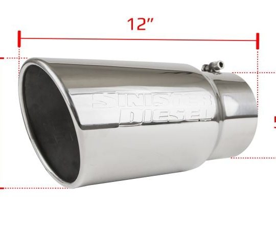 The Sinister Diesel Exhaust Tip is a durable, high-quality stainless steel accessory that enhances your vehicle’s exhaust system. It features a single-wall, angle-cut design for a stylish, aggressive look and fits most 4″ exhaust systems. With a polished finish and easy installation, it offers both performance and visual appeal.
