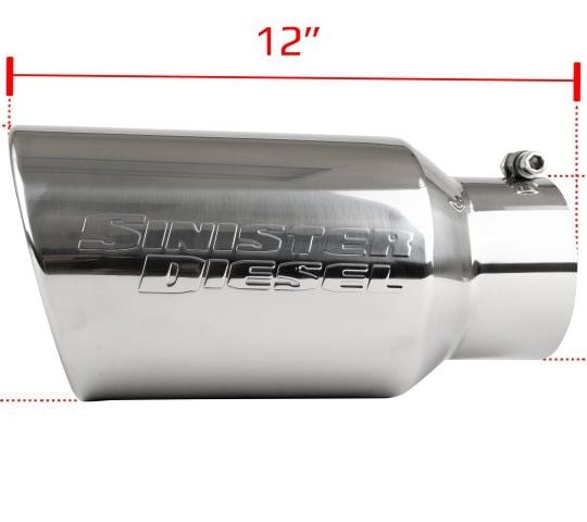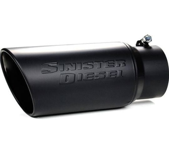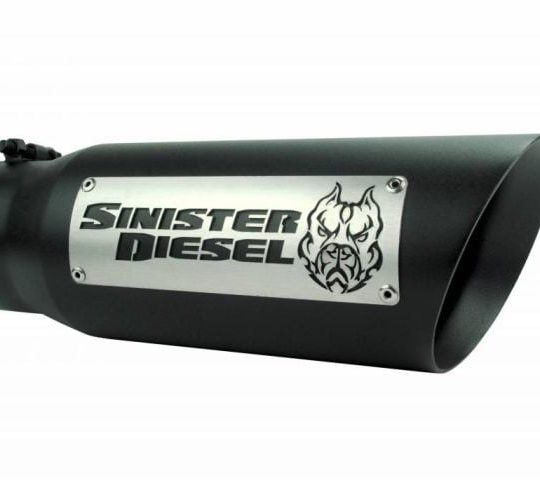 The Sinister Diesel Exhaust Tip is a durable, stainless steel aftermarket accessory that enhances both the look and performance of a vehicle’s exhaust system. It features a single-wall, angle-cut design with a Black Ceramic finish for a stylish, aggressive appearance. Easy to install, it fits most 4″ exhaust systems and is resistant to corrosion.