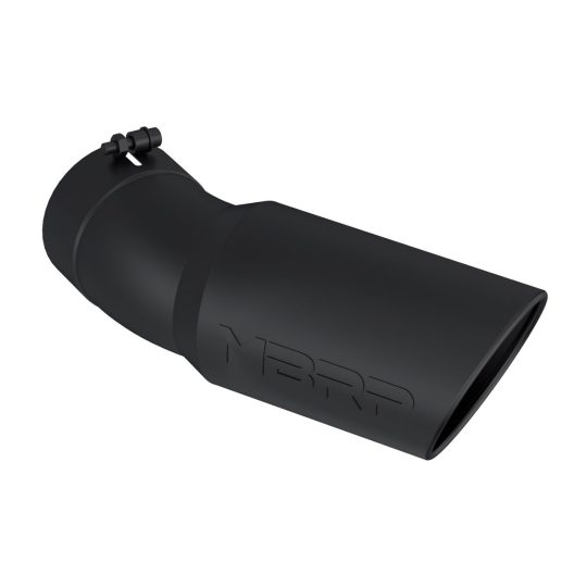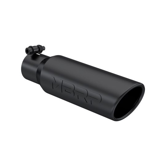 2.5″ Inlet Exhaust Tip (T5113BLK), Black Coated, T304 Stainless Steel, Rolled Angle Cut, Single Wall
