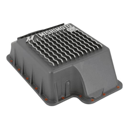 The Mishimoto Aluminum Transmission Pan MMTP-F2D-89 fits Ford E4OD, 4R100, and 5R110 transmissions. It increases fluid capacity by 6.6 quarts for improved cooling. The cast-aluminum design enhances durability and long-term performance. Internal baffles and a magnetic drain plug improve operation and serviceability. This pan delivers a reliable upgrade for demanding transmission applications.